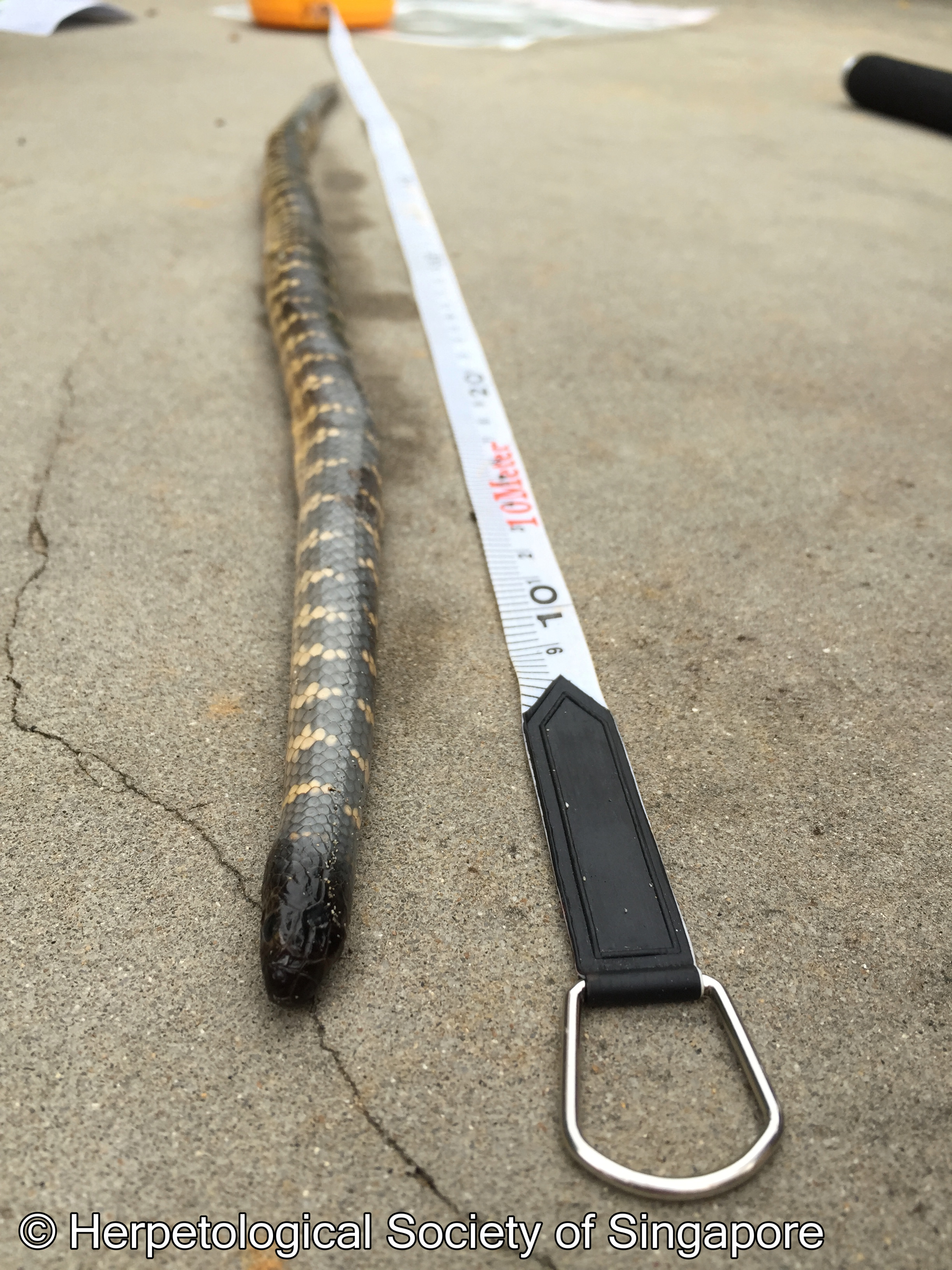 The carcass was measured at 0.61m. We placed it into the freezer in the NParks office so that the carcass would not decompose further. This snake did not die in vain. The carcass will be handed over to the Lee Kong Chian Natural History Museum, where it can contribute to biodiversity research, education and, be used to encourage a greater appreciation for local wildlife.