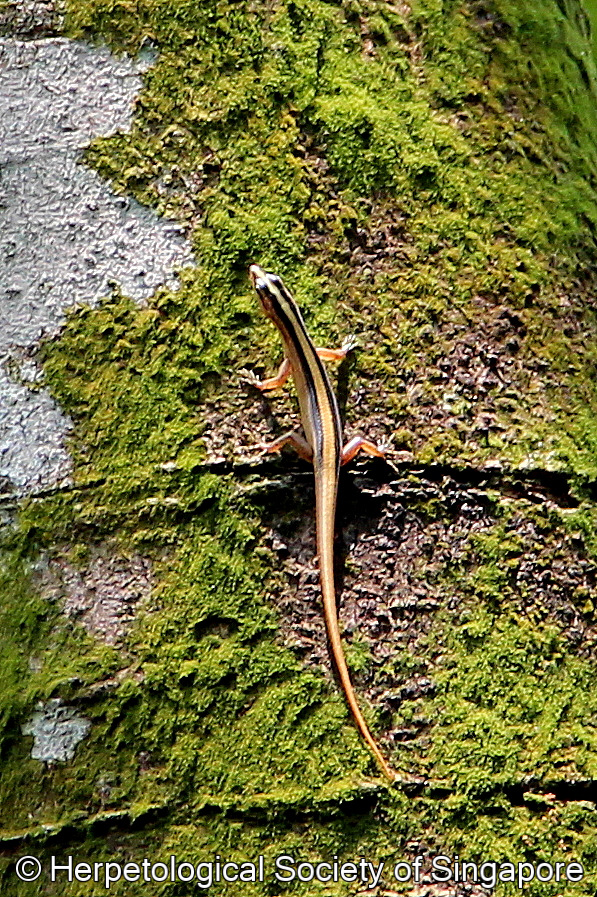 Saving the best for last, we were very fortunate to spot the Yellow Striped Tree Skink (Lipinia vittigera) back at the Ranger Station! This tiny lizard is rarely seen in Singapore, making it a very special find indeed! It soon captivated everyone’s attention, and the sort of paparazzi normally reserved for rare birds soon surrounded the tree that it was perched on. It was very heartening to see a tiny herptile get so much attention, and after a brief phototaking session, we left it to its own devices in peace.
