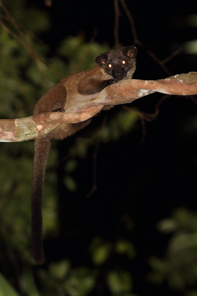 While photographing the frogs, I noticed eye-shine coming from the canopy. Tt was coming from a Small Toothed Palm Civet (Arctogalidia trivirgata) which was probably wondering what we were doing in its home. It stayed around watching us for quite a while and eventually scurried further into the canopy.