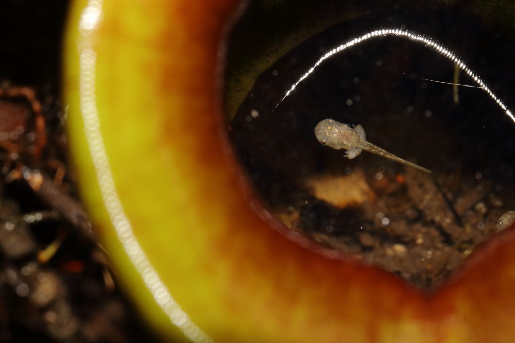 Upon investigation, we found tadpoles of the Bornean Chorus Frog (Microhyla borneensis) in some of the pitchers! These frogs are one of the few species whose tadpoles develop in pitcher plants!