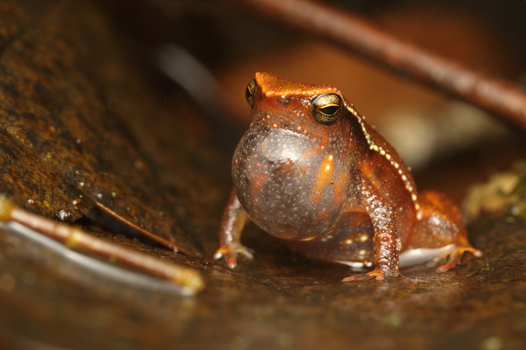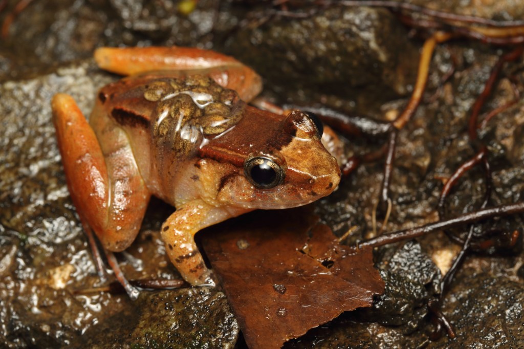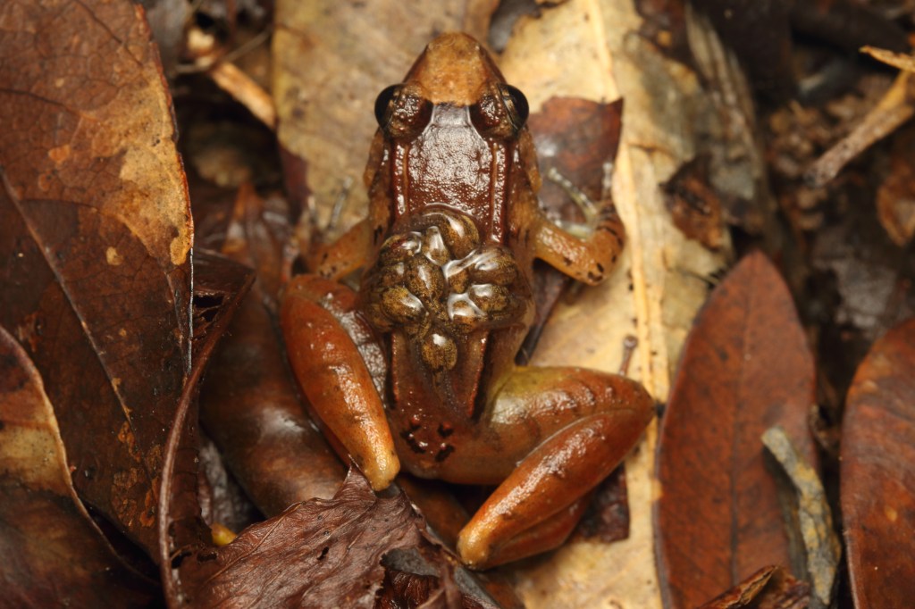 Seeing this spectacular behaviour was actually one of our targets for the trip! Males of this species are known to care for the eggs and wait for them to hatch. When the tadpoles hatch, they climb onto the male’s back. The male then ferries his children to a suitable catchment of water to deposit them.