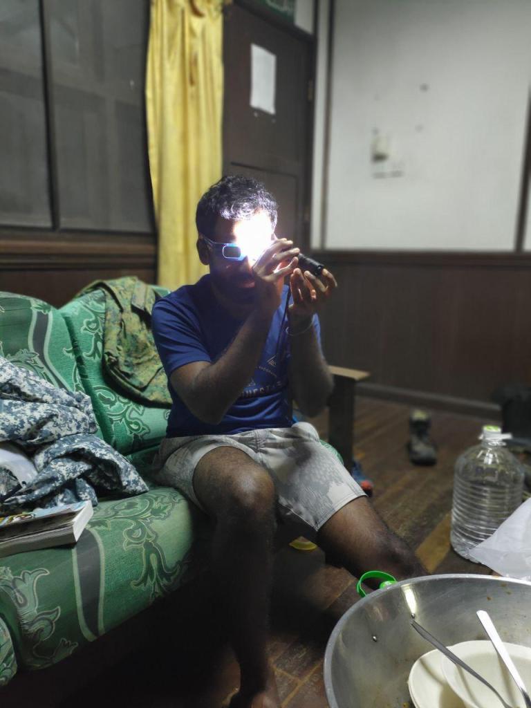 Sankar was interested to see how the frogs would react to the sudden darkness and if they would start calling. To our dismay, when we reached the summit, the sky was completely overcast and the sun was nowhere to be seen. We had hoped that the sky would be clear enough for the eclipse to be visible. It did eventually clear and the ending eclipse was visible to us for about 2 seconds. But most of us were distracted and didn’t see anything. The frogs were thoroughly unperturbed by this whole affair.