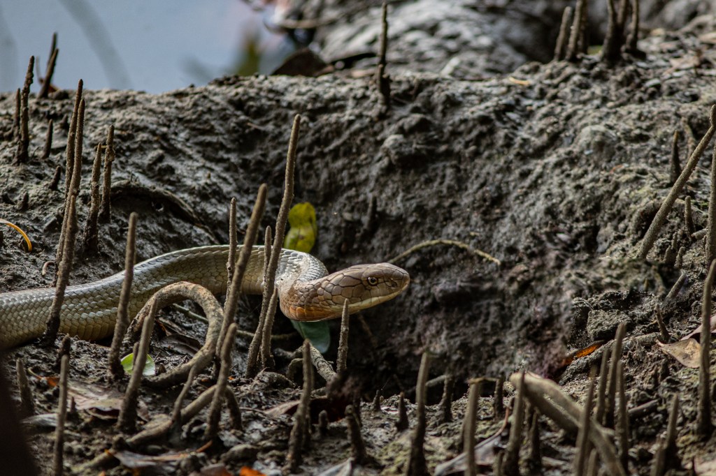 Both large reptiles seemed to be wary of each other. They appeared to confront each other in the mangrove understory. But neither seemed eager to start a fight with the other.