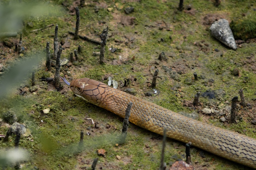 Funnily enough, it didn’t really seem that much bigger for just having swallowed an entire python. Usually after such large meals, snakes will stay in the vicinity as it is harder for them to move around with that much food in their bodies. The king cobra however, seemed unfazed and gracefully slithered away, no doubt to find a hiding spot to rest and digest its meal.